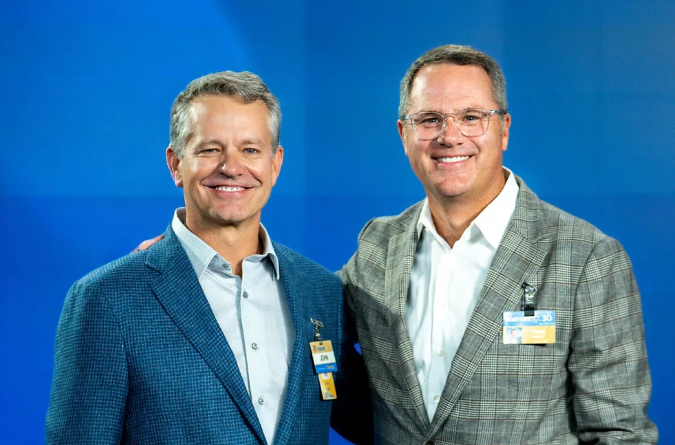 12년간 월마트를 이끌어온 더그 맥밀란(우)에 이어 2026년부터 월마트 CEO를 맡게 될 존 퍼너(좌)