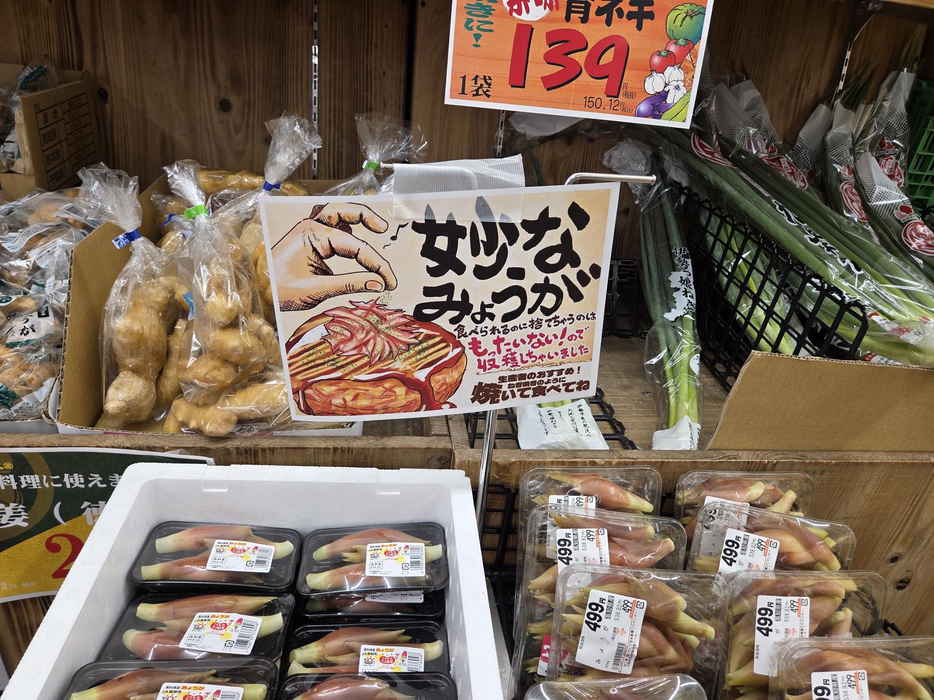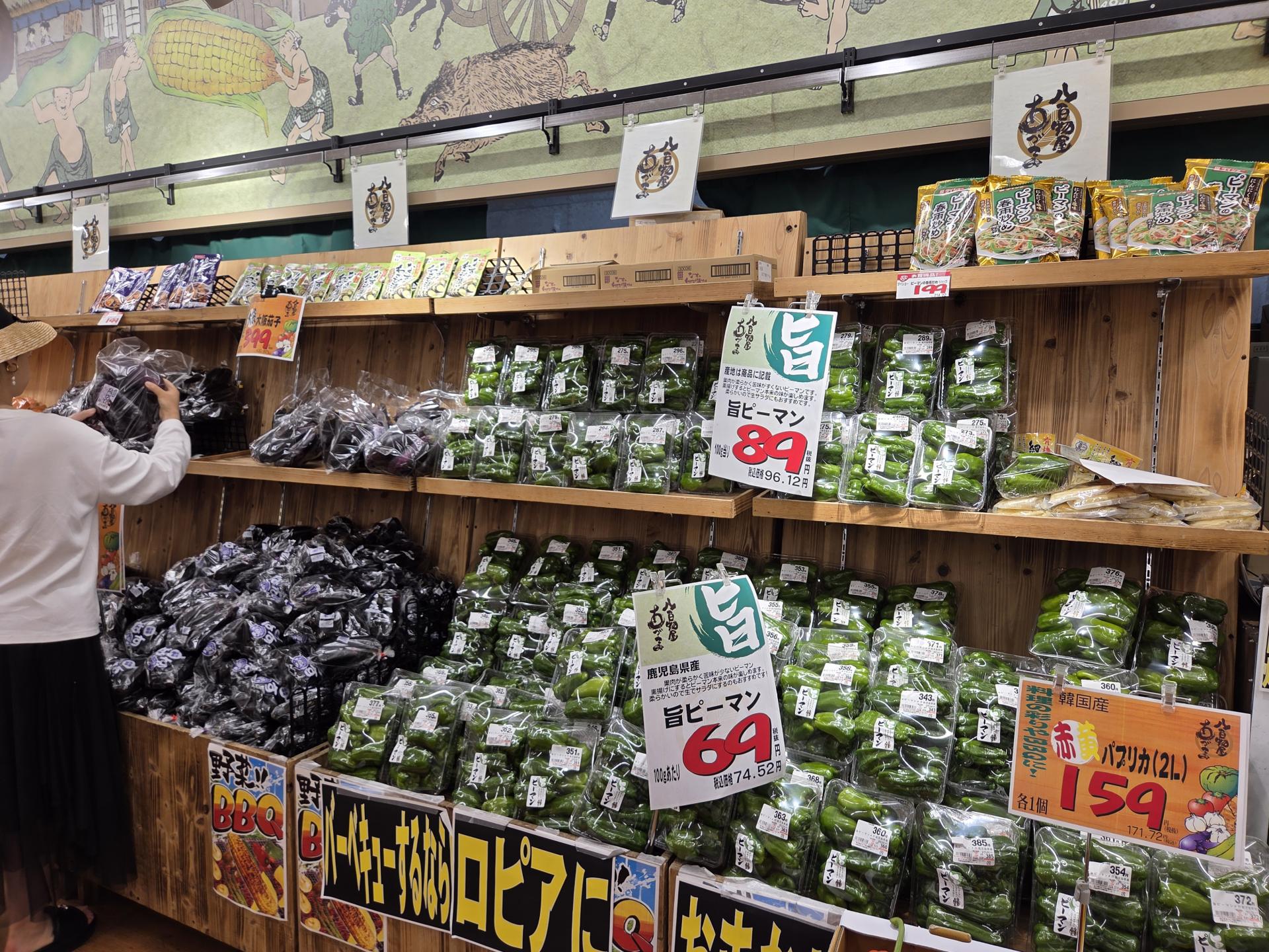 오사카베이타워 1층에 위치한 '로피아 오사카베이점'을 방문했을 때의 첫 인상은 매우 '로컬 지향적'이라는 것이었어요. 지역상품을 강조한 POP, 바로 옆 농장에서 수확한 듯 신선한 농산품, 지역 문화를 반영한 벽면 일러스트 등 매장 전체가 역동적이고 생동감이 넘쳤는데요. 특히 매대마다 표시된 '아삭아삭 맛있는 레터스', '바삭, 과즙 가득 참을 수 없어!', '먹을 수 있는데 버리는 건 아깝잖아요! 그래서 가져왔어요', '얇게 썰려 있어 불이 빨리 통하고 조리도 간편!'과 같은 재미있는 문구가 시선을 머물게 했습니다.