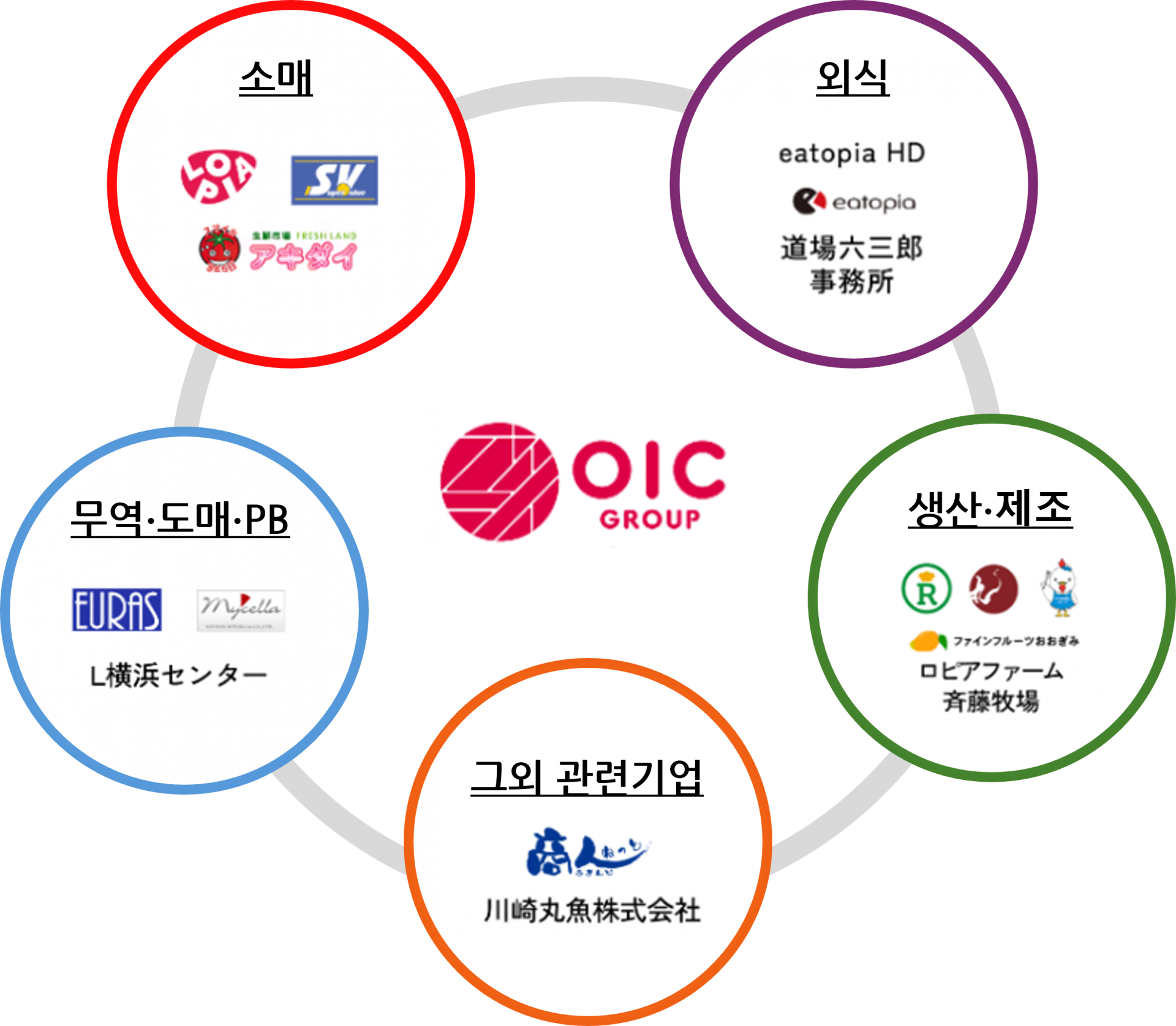 농식품 생산 및 공급업체인 '로피아 팜', 젖소를 직접 사육하는 낙농업체 '사이토 목장', 프리미엄 열대과일 생산 및 소싱업체 '파인프룻오오기미' 등 그룹 산하의 생산 및 제조사만 20여 개가 넘고, PB 개발사인 '마이셀라', 식품 원재료 및 제품 수출입 기업 '유라스' 등과도 유기적으로 협업하고 있습니다.