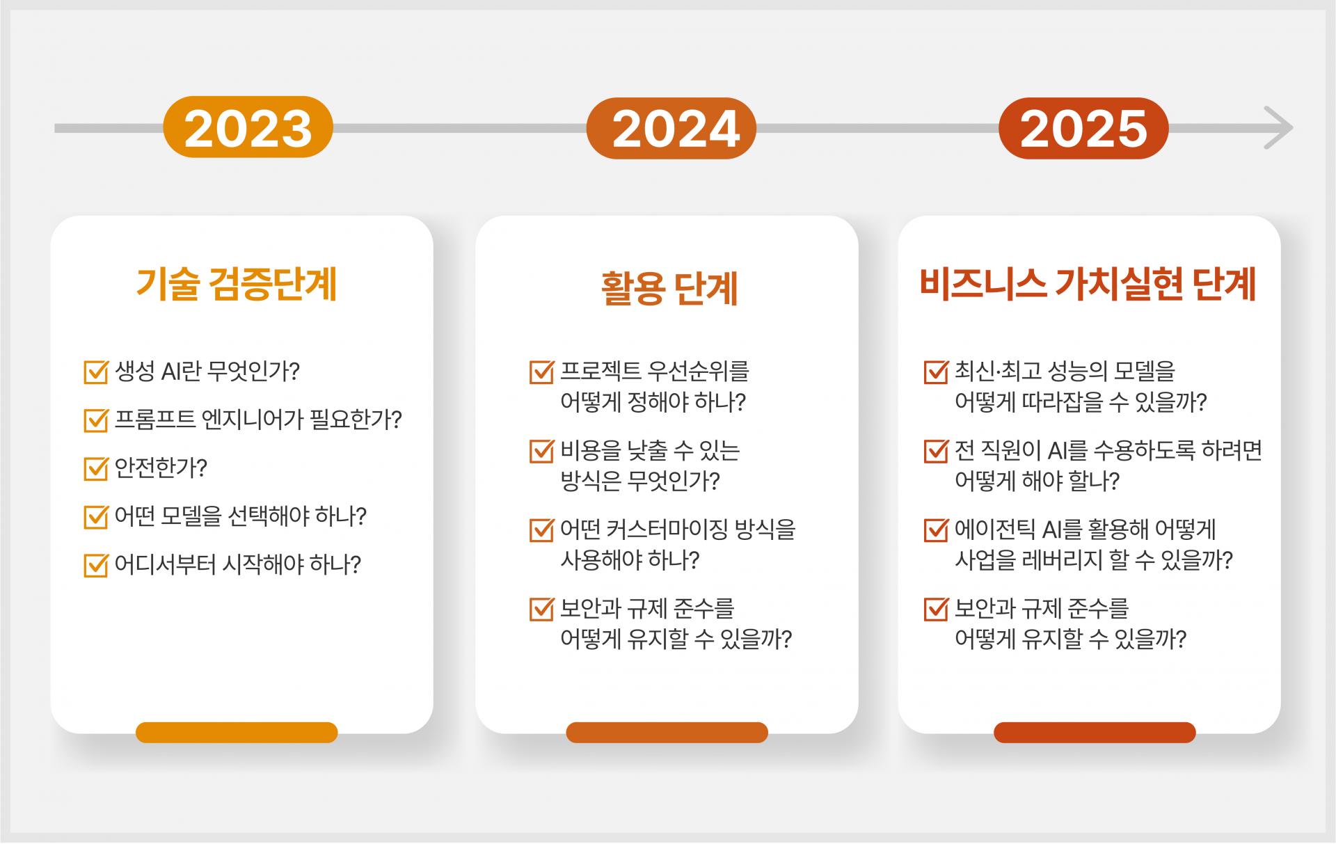 생성형 AI가 소매업에 접목되면서 그 변화는 매우 급속도로 진행되고 있습니다. 챗GPT가 처음 등장한 2023년, 기업들은 수많은 실험과 테스트를 통해 기술을 검증했고, 2024년에는 실제 제품과 서비스에 적용하기 시작했으며, 올해는 비즈니스에서 실질적인 가치를 창출하고 있습니다. 기술 도입부터 검증, 실험, 성과창출까지 채 3년이 안걸린 셈이죠.