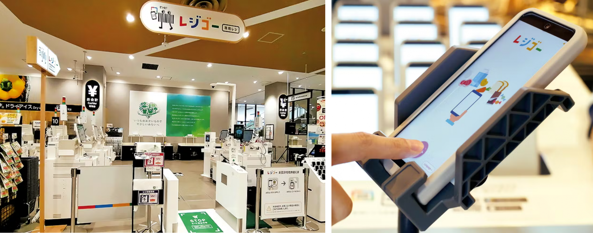 일본 이온은 매장에서 쇼핑하면서 결제까지 할 수 있는 모바일 셀프 스캔 결제 시스템 '레지고(RegiGo)'를 도입했어요.