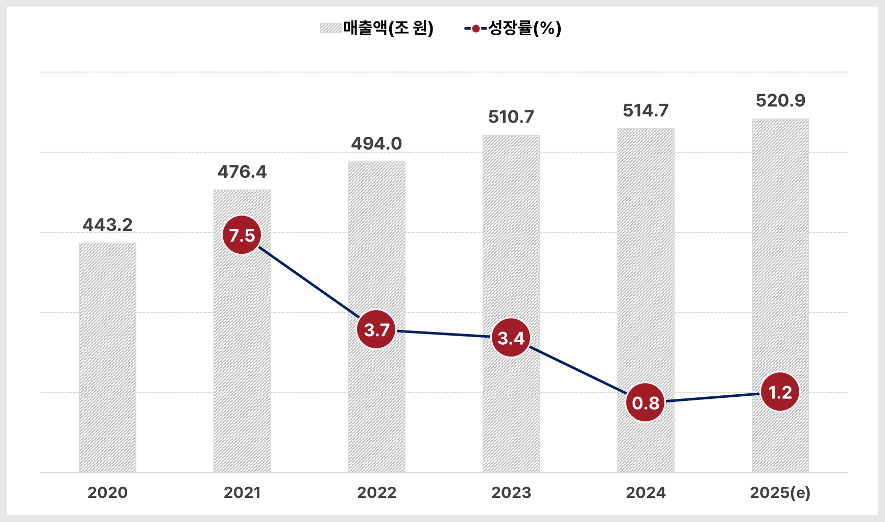 2025년 국내 소매시장 규모는 전년 대비 1.2% 성장한 약 521조 원으로 추정됩니다. 상반기에 극도로 냉각됐던 소비심리는 하반기 들어 다소 완화되며, 연간 성장률을.....