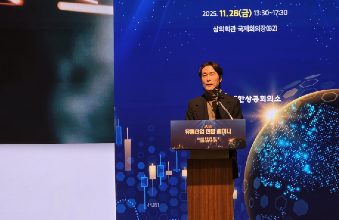 '2026 유통산업전망 세미나'에서 글로벌 소매업계 트렌드에 대해 발표하고 있는 BCG코리아 안태희 MD파트너.