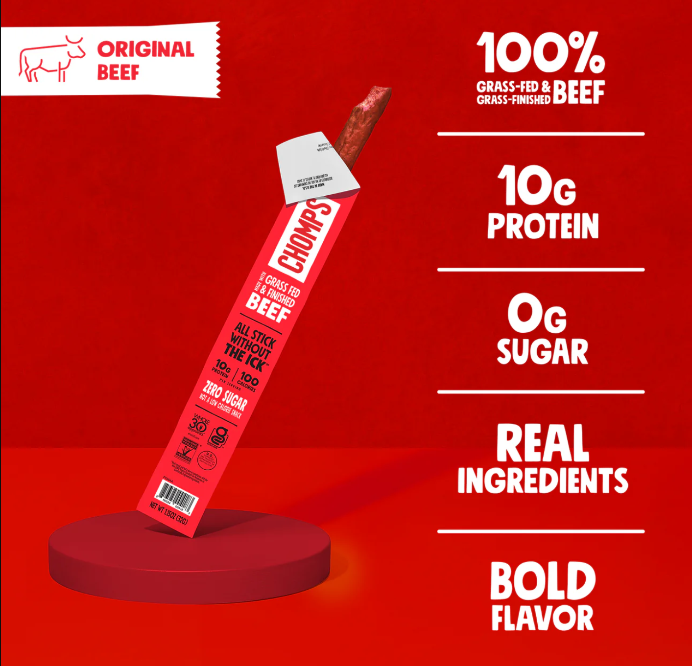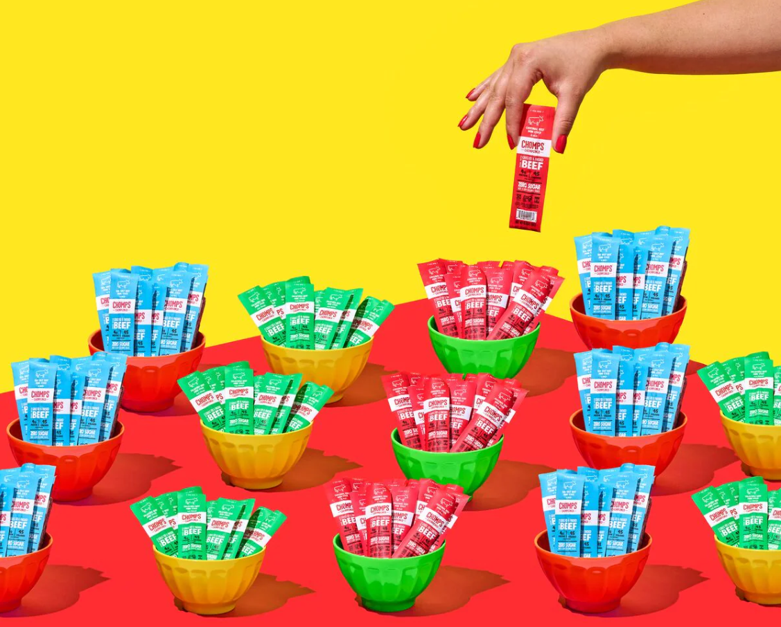 미국 육류스낵 촘프스(Chomps)는 요즘 SNS 피드에 자주 등장하는 제품이에요. '고단백·무설탕·저탄수화물 건강식'이라는 명확한 메시지, 감각적인 디자인의 개별 스틱 포장, 청바지 주머니나 핸드백에 쏙 들어가는 간편성. 촘프스는 전통적이고 남성적인 간식으로 여겨졌던 육포를 트렌디한 건강 스낵으로 리포지셔닝하는 데 성공했어요.