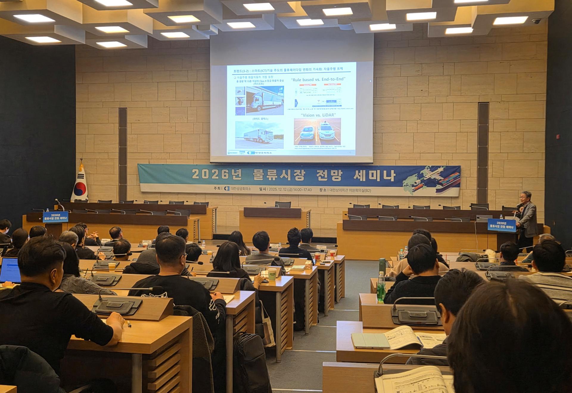 대한상공회의소 유통물류진흥원이‘2026 물류시장 전망 세미나’를 개최했어요. 각 분야 전문가들이 연사로 참석해 최근 세계정세 변화에 따른 글로벌 공급망 재편과 각 영역별 물류시장.....
